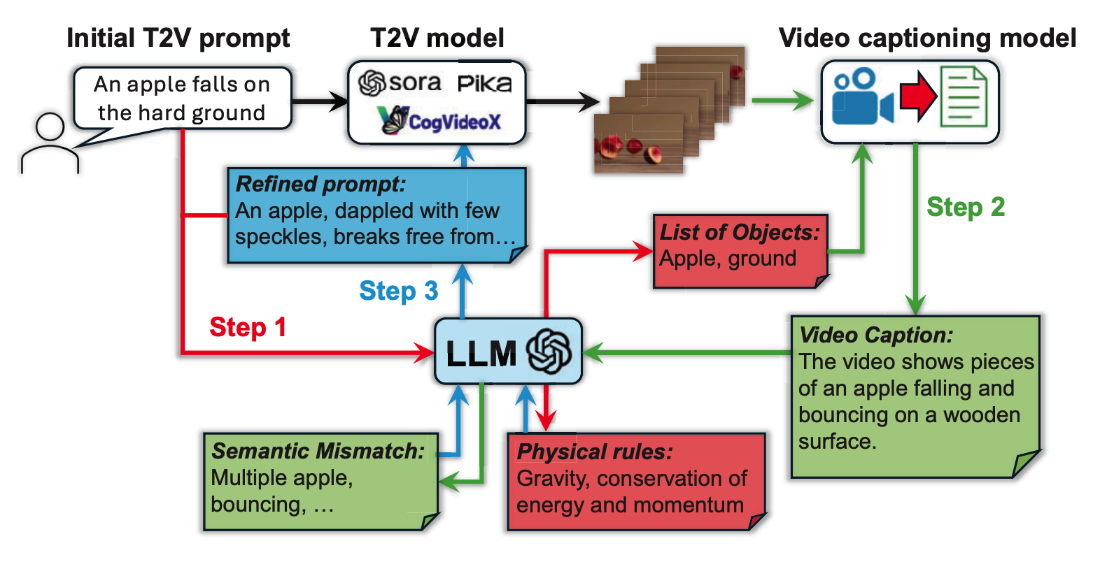 Nov 30, 2024 | New perprint: PhyT2V: LLM-Guided Iterative Self-Refinement for Physics-Grounded Text-to-Video Generation |
